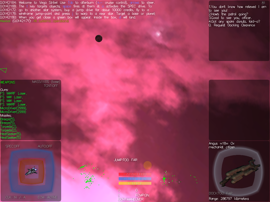 I upgrade the first Llama with level V shields, capacitor and reactor. I add a pair of microdrivers so I can "Reach Out and Touch Someone". I keep a pair of lasers and put auto-tracking on all four mounts. Four auto-tracking purchases will set one back a little over 360K credits. I load the missile bays with heat seekers. After that I go hunting Luddites and Pirates to build up credits for a better ship. I make sure to kill more Luddites than I do Pirates to try to keep other factions happy with me. At least 3 or 4 to 1. I never take on anything with too many opponents or capital ships that can eat the Llama whole. I also "spam" nice talk with those few factions that do not seem impressed with my bounty hunting skills.
